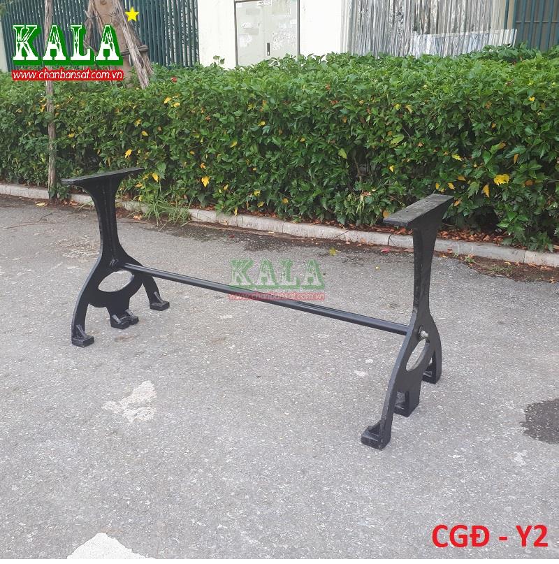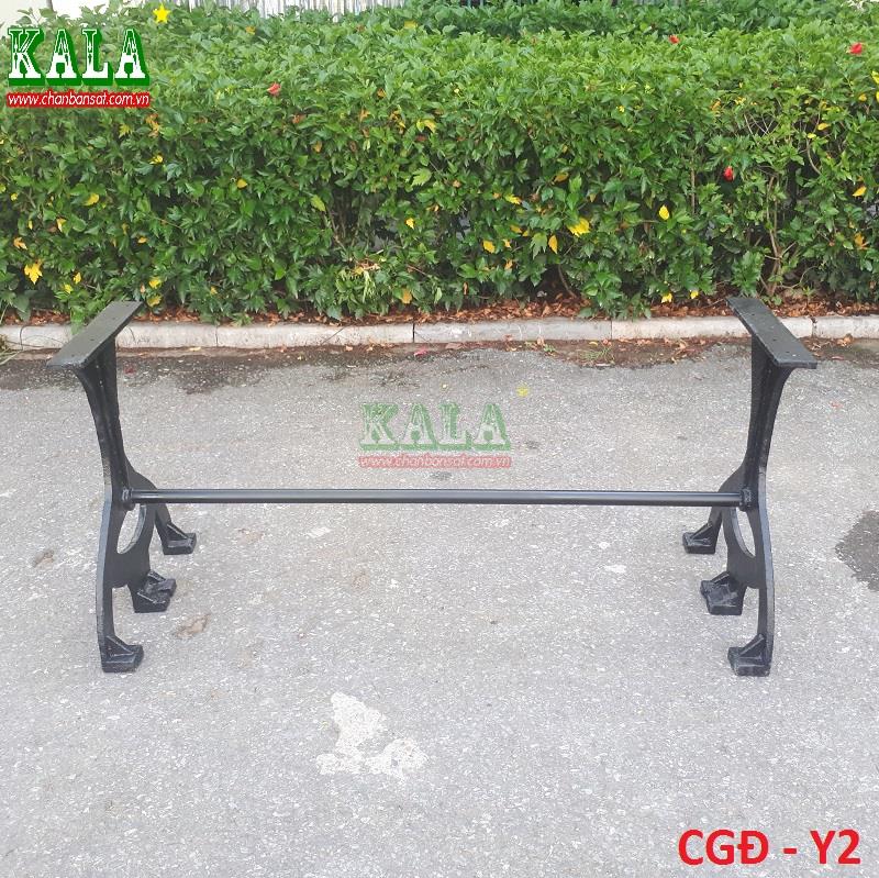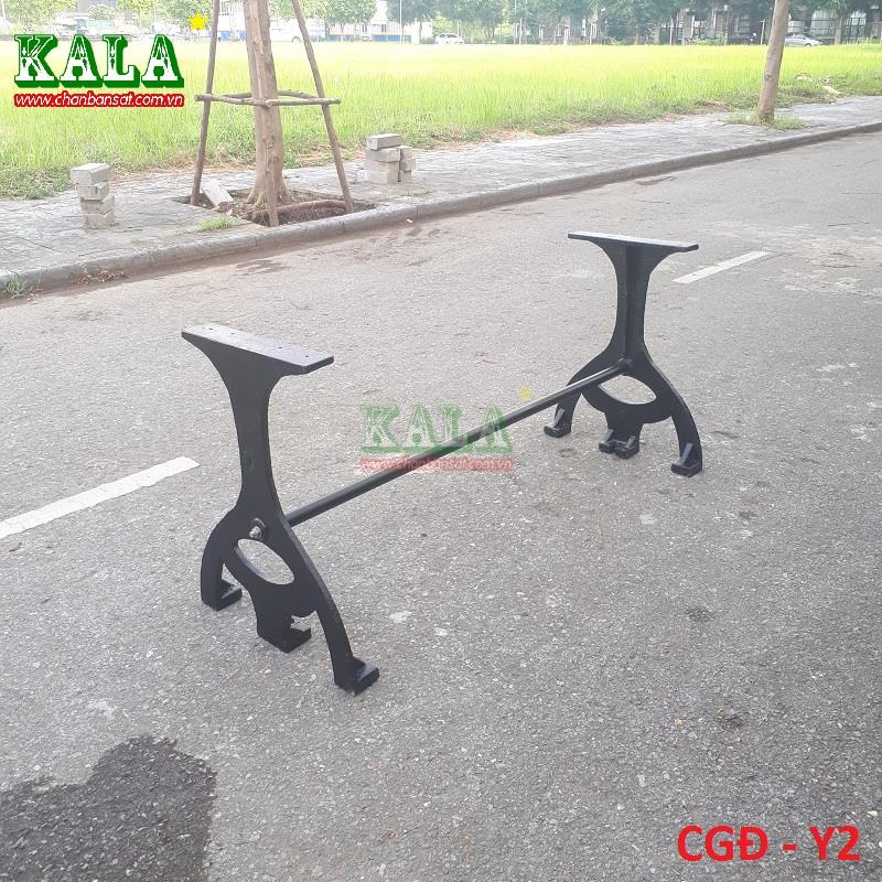 Chân được đúc bằng gang hình chữ Y tách rời nhau và được gắn kết lại bằng thanh giằng rất chắc chắn nên thường được mọi người kết hợp với mặt bàn đá hay mặt bàn làm bằng gỗ tự nhiên nguyên tấm rất phù hợp. Chân bàn ăn