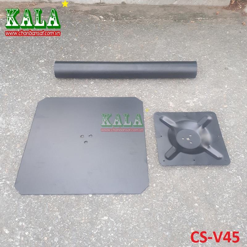 Chân bàn sắt là mẫu chân bàn thông dụng nhất hiện nay bởi vì chân sắt có độ bền cao, chắc chắn hơn nữa với giá thành hợp lý nên nhiều đơn vị lựa chọn vào không gian của mình đặc biệt là chân sắt làm bàn quán cafe, chân bàn sắt làm quán ăn nhanh, chân sắt làm bàn quán nướng và chân cũng thường dùng làm bàn để trưng bầy. Dưới đây chân bàn sắt KALA xin giới thiệu tới quý khách mẫu chân bàn sắt CS-V45 là mẫu có kích thước vừa phải với phần mâm bên dưới det làm bằng sắt tấm có độ dày 0.5ly và đường kính tròn là 40cm rất chắc chắn nên được mọi người thường xuyên sử dụng.