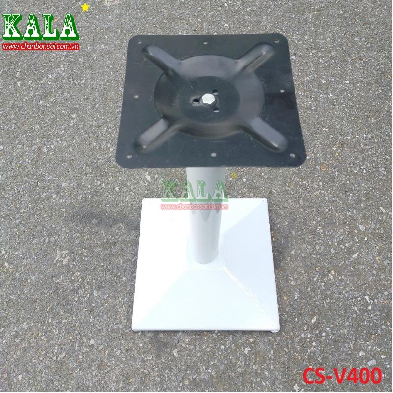 Chân bàn sắt CS-V400 được làm bằng sắt, thiết kế đơn giản với mặt bích và mặt đáy là hình vuông. Ngoài ra chân bàn được sơn một lớp sơn chống rỉ mà trắng, tạo cảm giác tươi mới sáng sủa, phù hợp với không gian hiện đại. Vậy nên chân bàn sắt được nhiều nhà hàng, Showroom lựa chọn.